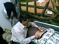 ولم تتجاوز عمليات ابو حازم الخمس دقائق بعد ان يجلس مريضه على اريكة مريحة ثم يغطيه بشرشف او حرام ثم يبدأ لمس الجزء المصاب ويتلوا عليه القران .